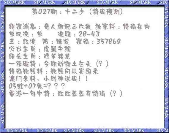 027期十二少(特码预测)[图]