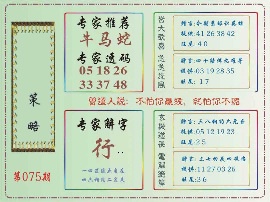 075期马经策略[图]