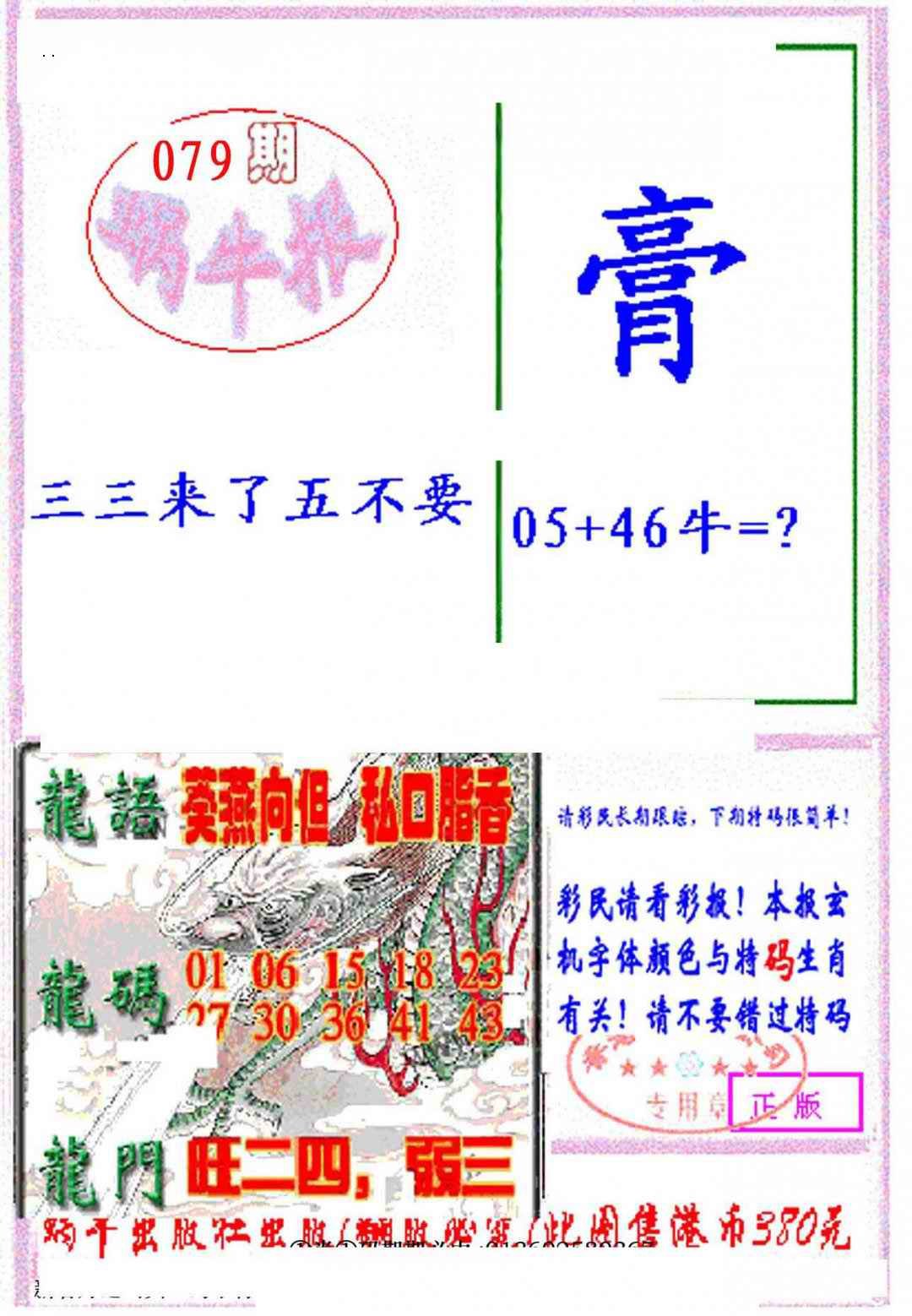 上一篇:079期九龙特新刊[图]