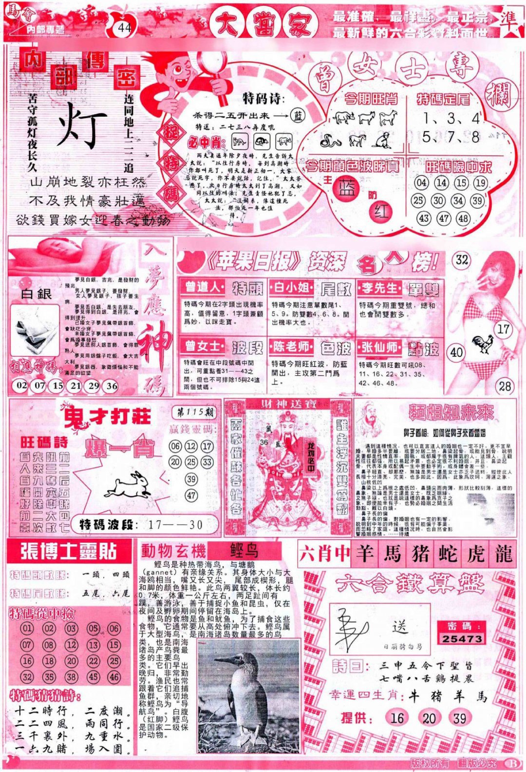 115期彩卷后庄B(保证香港版)[图]