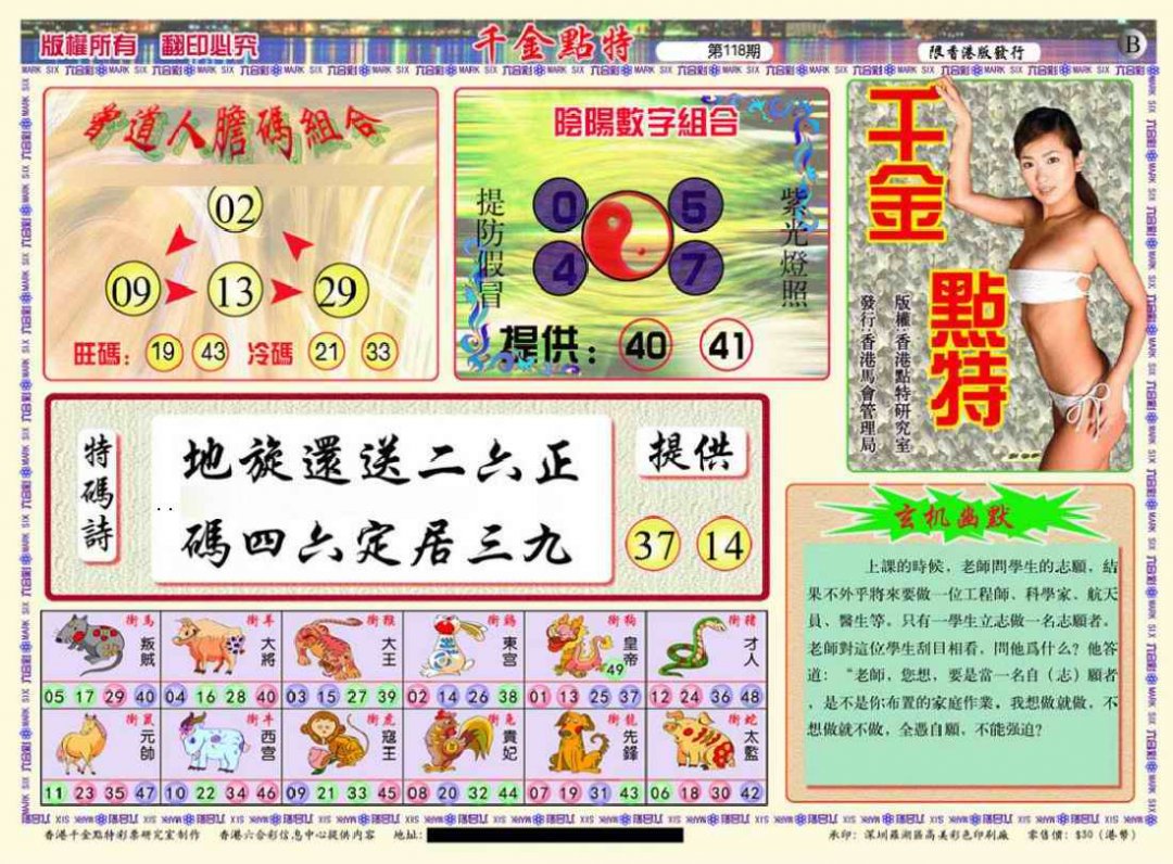 118期千金点特B(正版)[图]