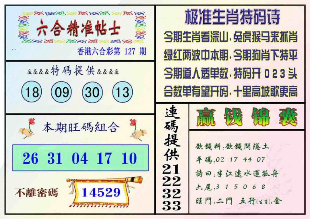 127期精准贴士[图]
