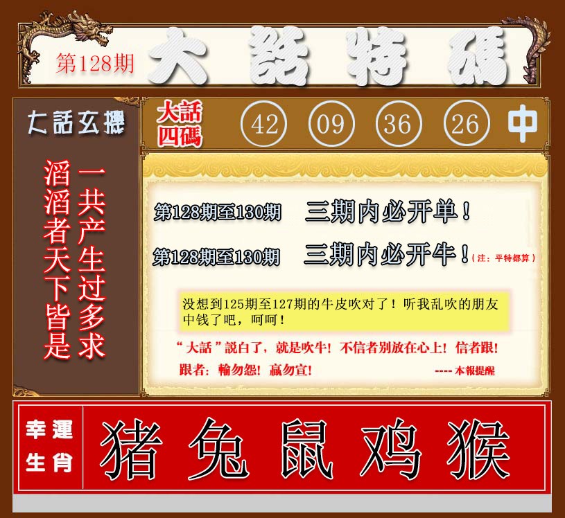 128期大话特码[图]