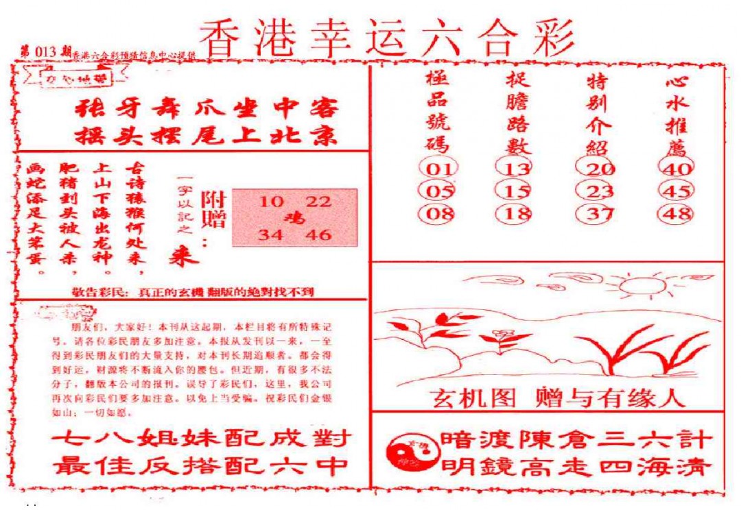 013期幸运六合彩(信封)[图]