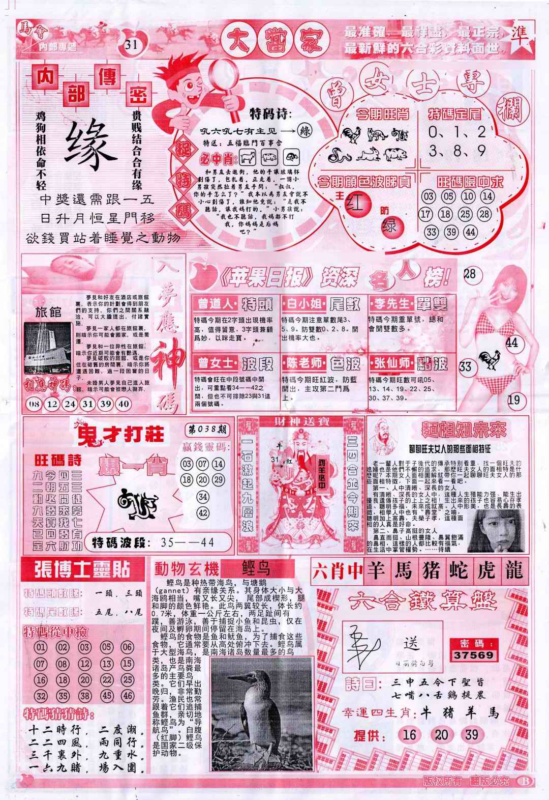 038期彩卷后庄B(保证香港版)[图]