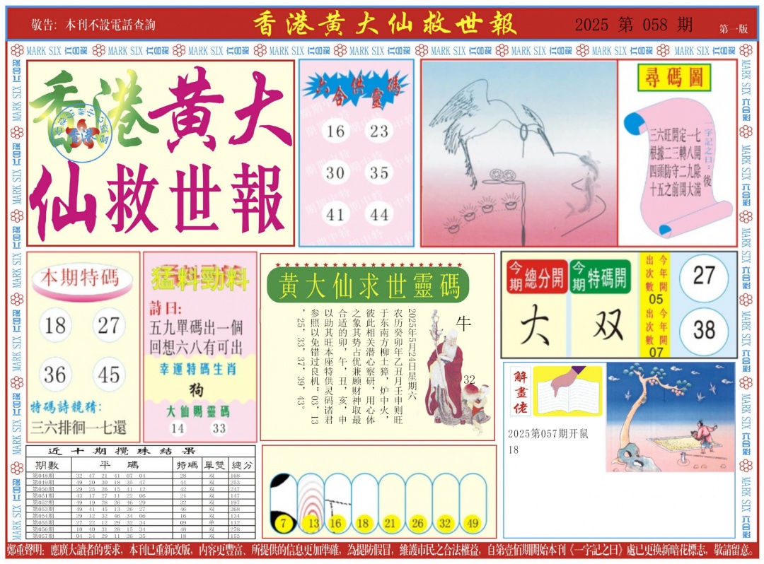 058期新黄大仙救世A[图]