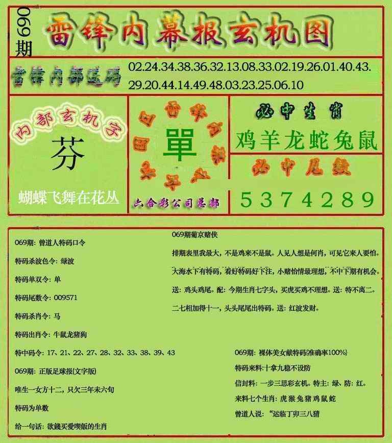 069期雷锋玄机报(新上市)[图]