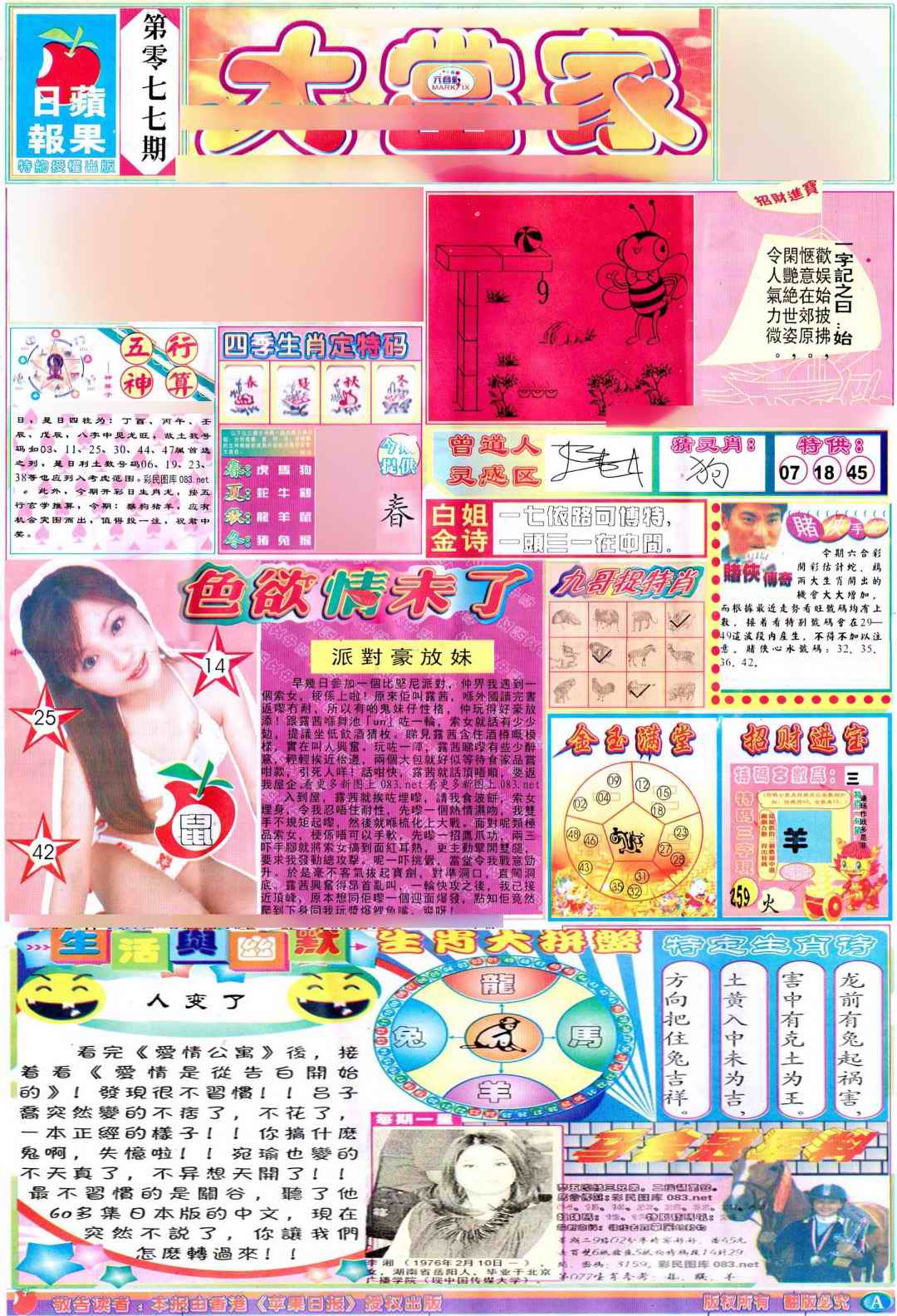 077期彩卷后庄A(保证香港版)[图]