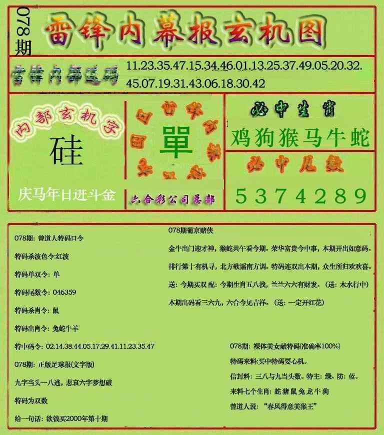 078期雷锋玄机报(新上市)[图]