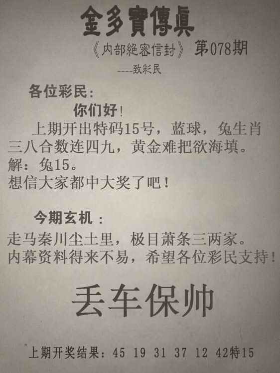 079期金多宝传真[图]