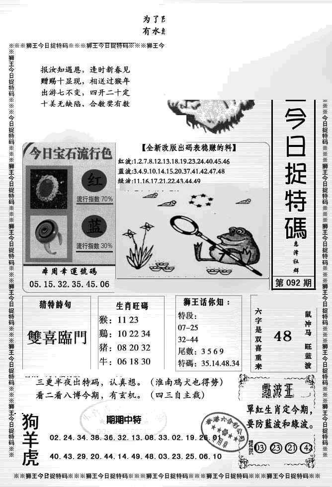 092期狮王今日抓特码[图]