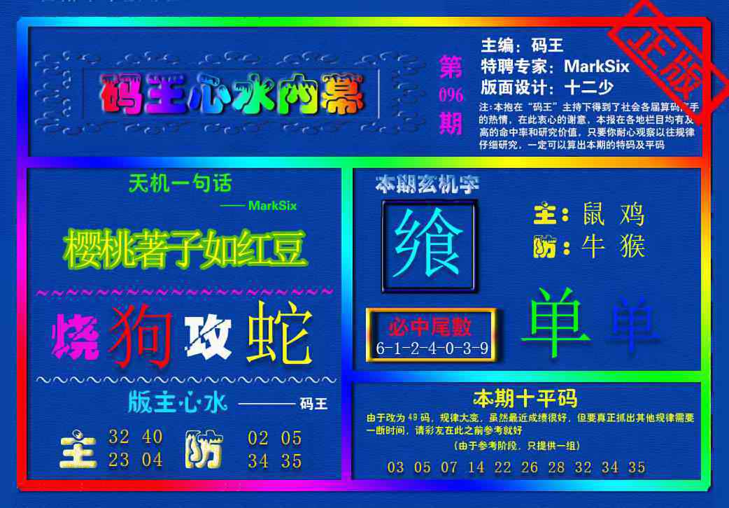 096期{码王雷锋}内幕报[图]