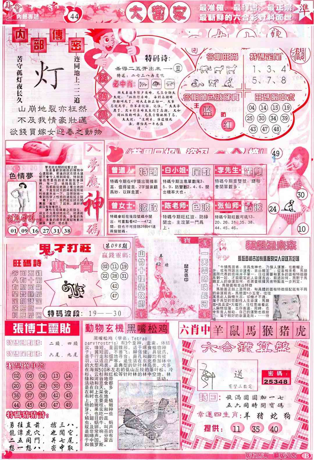 098期彩卷后庄B(保证香港版)[图]