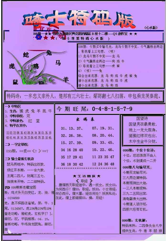 099期另骑士特码版[图]