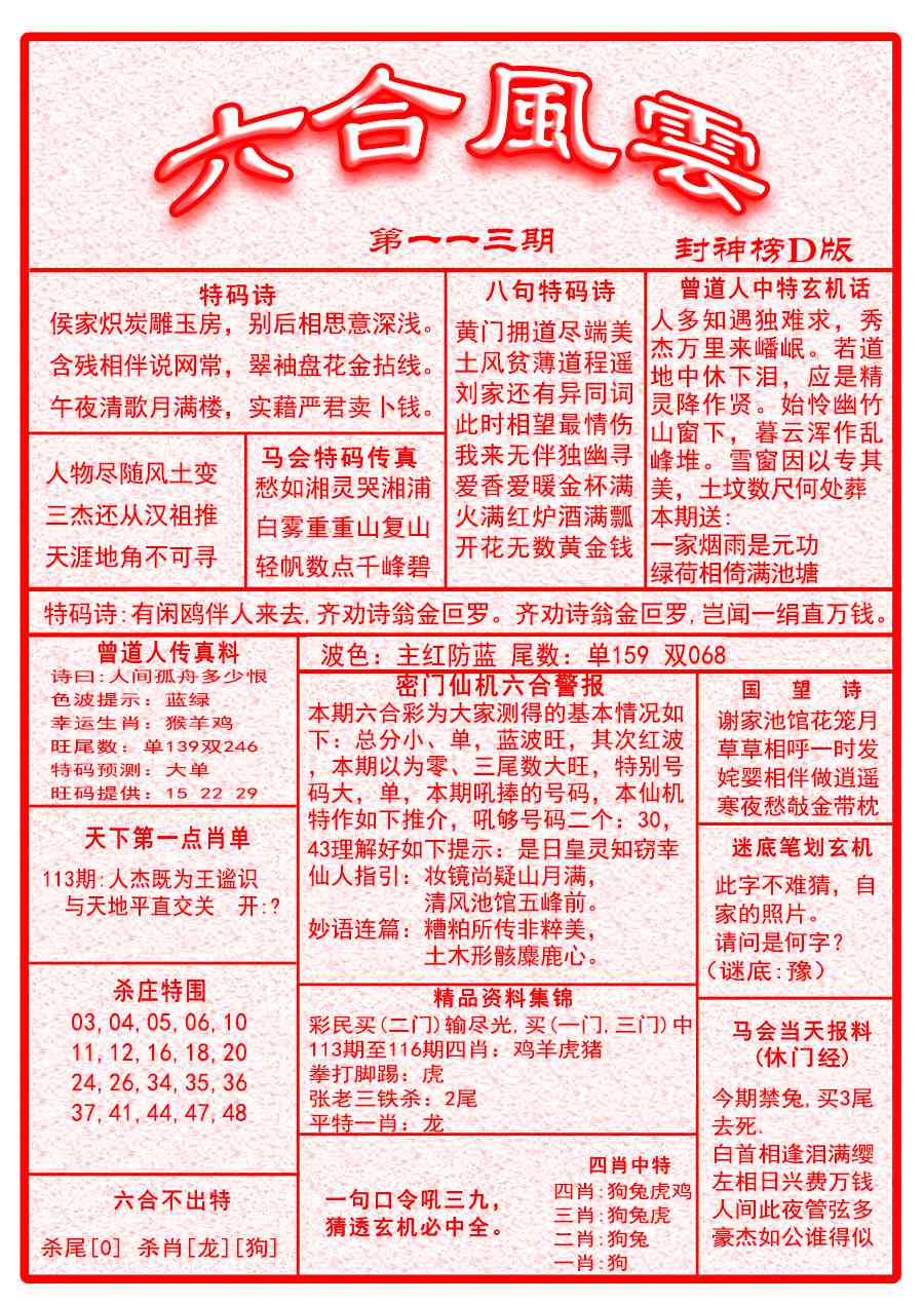 113期六合风云A面[图]